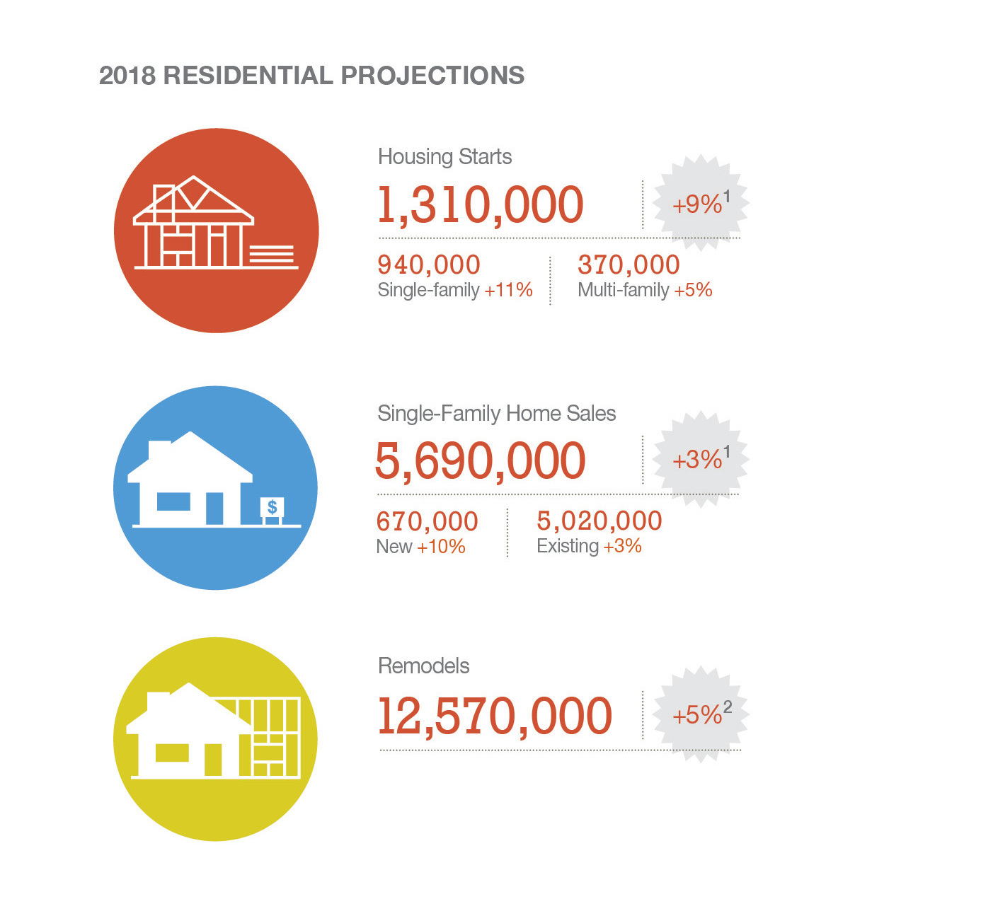 The residential housing and remodeling markets grew in 2017, and 2018 projections foretell another positive year. In fact, housing starts are expected to swell by 9 percent (up from 2 percent in 2017), including nearly 1 million new single-family residences. Meanwhile, current homeowners continue to invest in home improvement, from lawn and garden projects to kitchen makeovers.